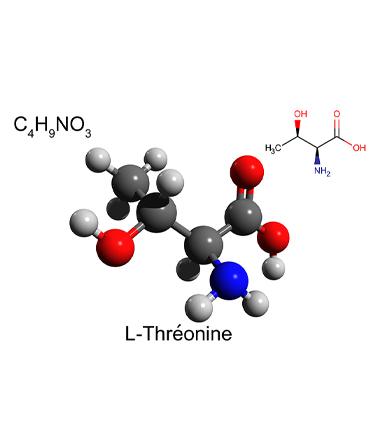 - Threonine, een essentieel aminozuur, wordt niet door het lichaam aangemaakt. Het is aanwezig in mucine, het glycoproteïne in slijm dat zorgt voor de functies van afweer en bescherming tegen bacteriën en virussen.