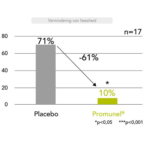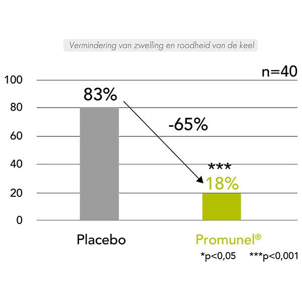 - Een vermindering van de symptomen van 83% na 3 dagen in de behandelde groep vs. 28% in de placebogroep