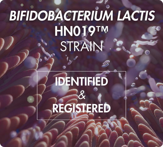 HN019™: Registrierter Stamm von Bifidobacterium lactis, klinisch dokumentiert mit einem ausgezeichneten Profil hinsichtlich der Verdauungsverträglichkeit;