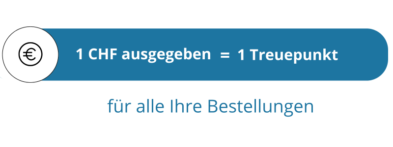 Sobald Sie 200 Punkte erreicht haben, erhalten Sie 10 CHF Treuerabatt, der automatisch bei Ihrer nächsten Bestellung abgezogen wird.