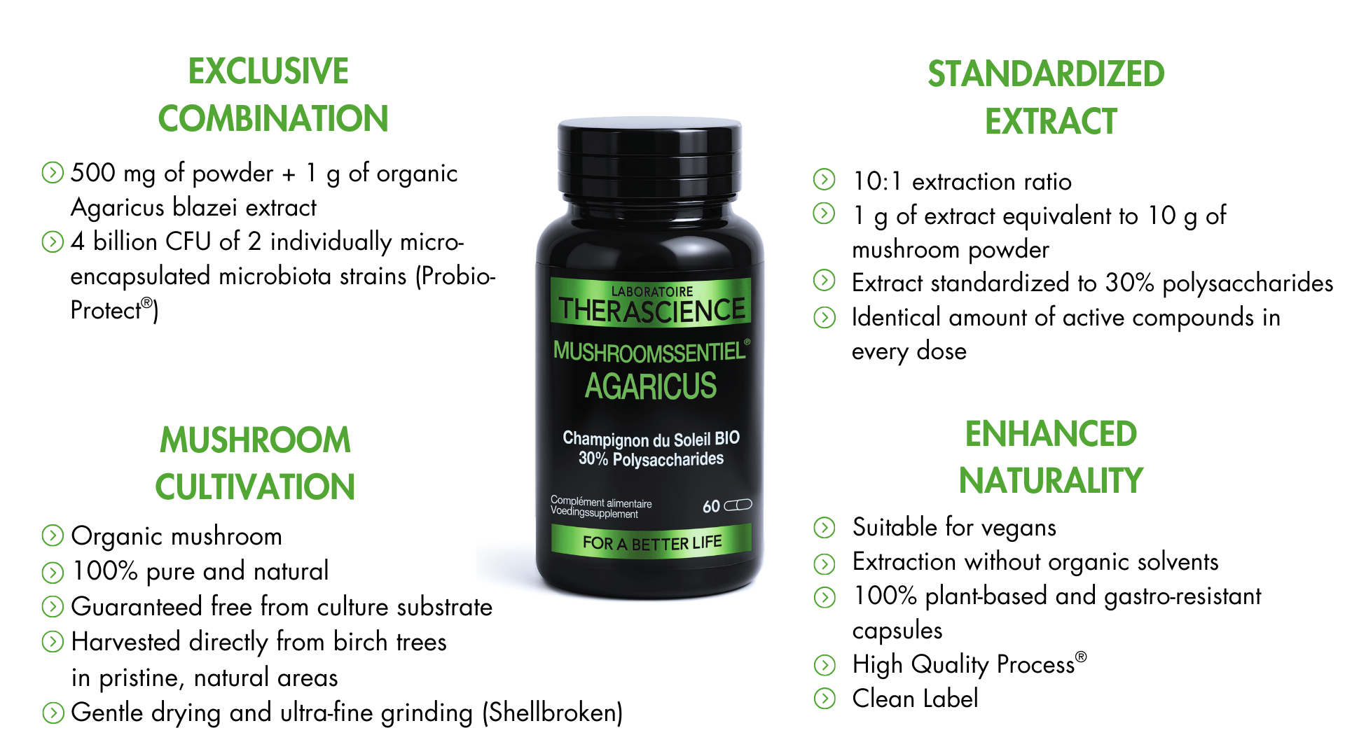 Nach der Ernte werden die Pilze sofort unter optimalen Bedingungen getrocknet, um ihre Qualität zu bewahren. Jeder Pilz wird anschließend von Hand kontrolliert, und nur diejenigen, die den höchsten Qualitätsstandards entsprechen, werden für die Verarbeitung zu Pulver und anschließend zu standardisiertem Extrakt mit titrierten Wirkstoffen ausgewählt.
