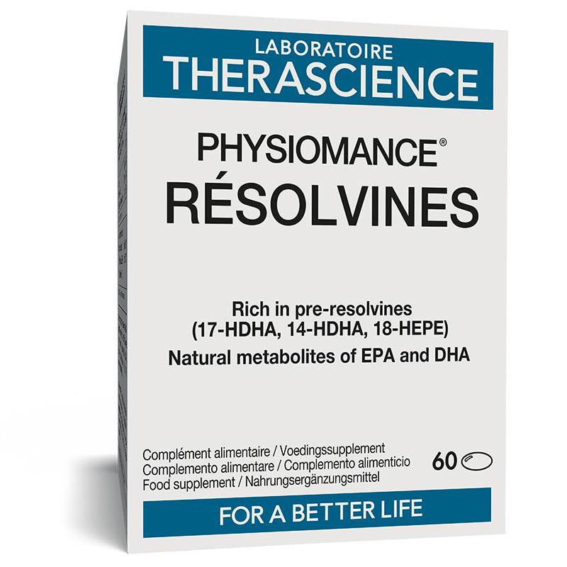 Unsere Formel PHYSIOMANCE RÉSOLVINES, hochkonzentriert in SPMs (610,5 µg pro Kapsel), wurde von unserem Forschungs- und Entwicklungsteam in Zusammenarbeit mit unserem wissenschaftlichen Ausschuss entwickelt und formuliert. Sie wurde intensiv erarbeitet, um eine ideale Lösung für eine ernährungsphysiologische Versorgung mit Pre-Resolvinen (17-HDHA, 18-HEPE und 14-HDHA) sowie den Omega-3-Fettsäuren EPA und DHA zu bieten.