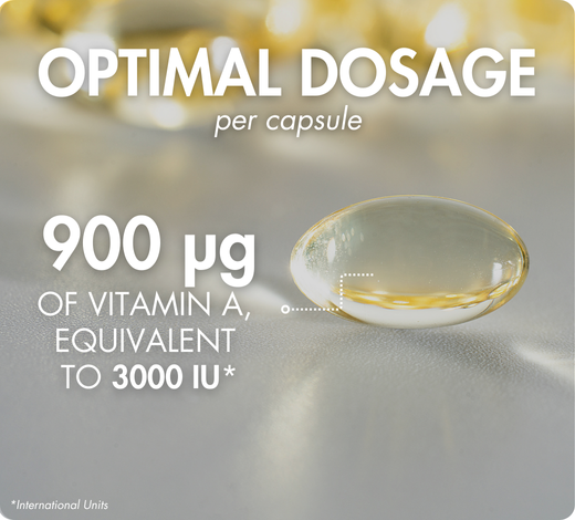 Optimale Dosierung: 900 µg Vitamin A bzw. 3000 IE* pro Kapsel