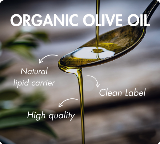 Als Träger wird ein kaltgepresstes Bio-Olivenöl verwendet, das wegen seiner natürlichen Qualität und perfekten Verträglichkeit mit der Aufnahme fettlöslicher Vitamine ausgewählt wurde.