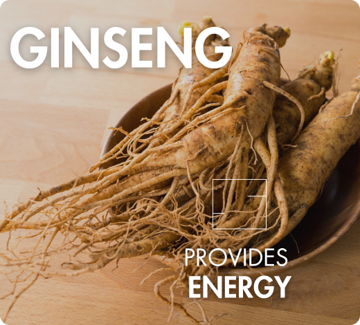 • - Ginseng extract, standardized in ginsenosides, provides energy