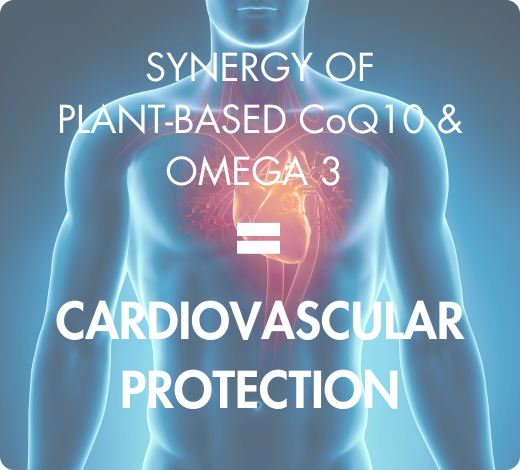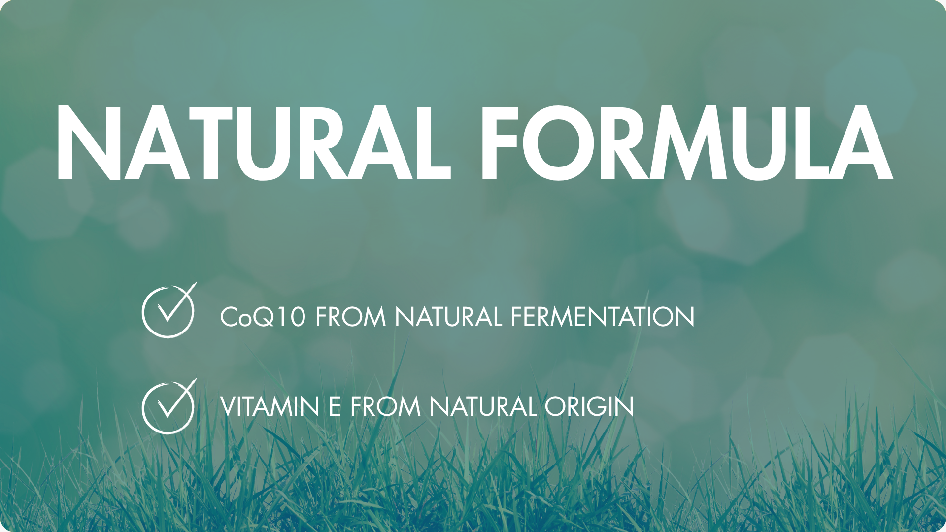 This formula uniquely combines 100 mg of natural and plant-based coenzyme Q10 from fermentation and 250 mg of EPA and DHA, two essential nutrients involved in cardiovascular protection.