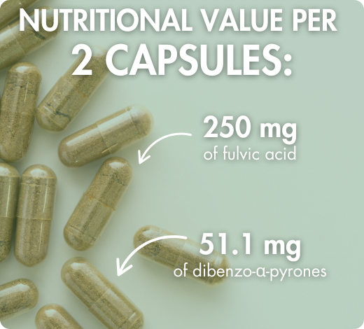 For 2 capsules, PHYTOMANCE® SHILAJIT provides 500 mg of PrimaVie® Shilajit, including 250 mg of fulvic acid and 51.5 mg of dibenzo-α-pyrones.