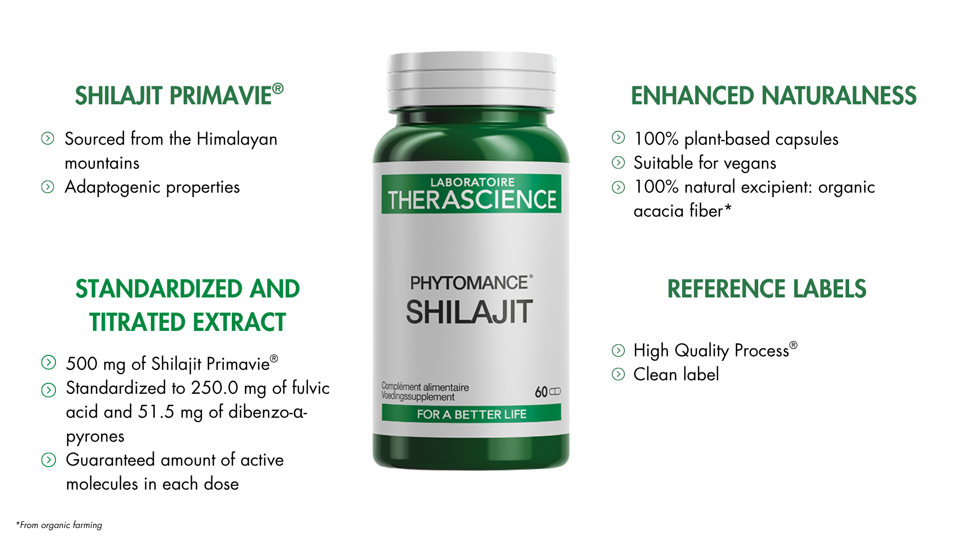 By choosing PHYTOMANCE® SHILAJIT, THERASCIENCE Laboratory ensures optimal quality with a premium ingredient meeting the highest scientific standards.
