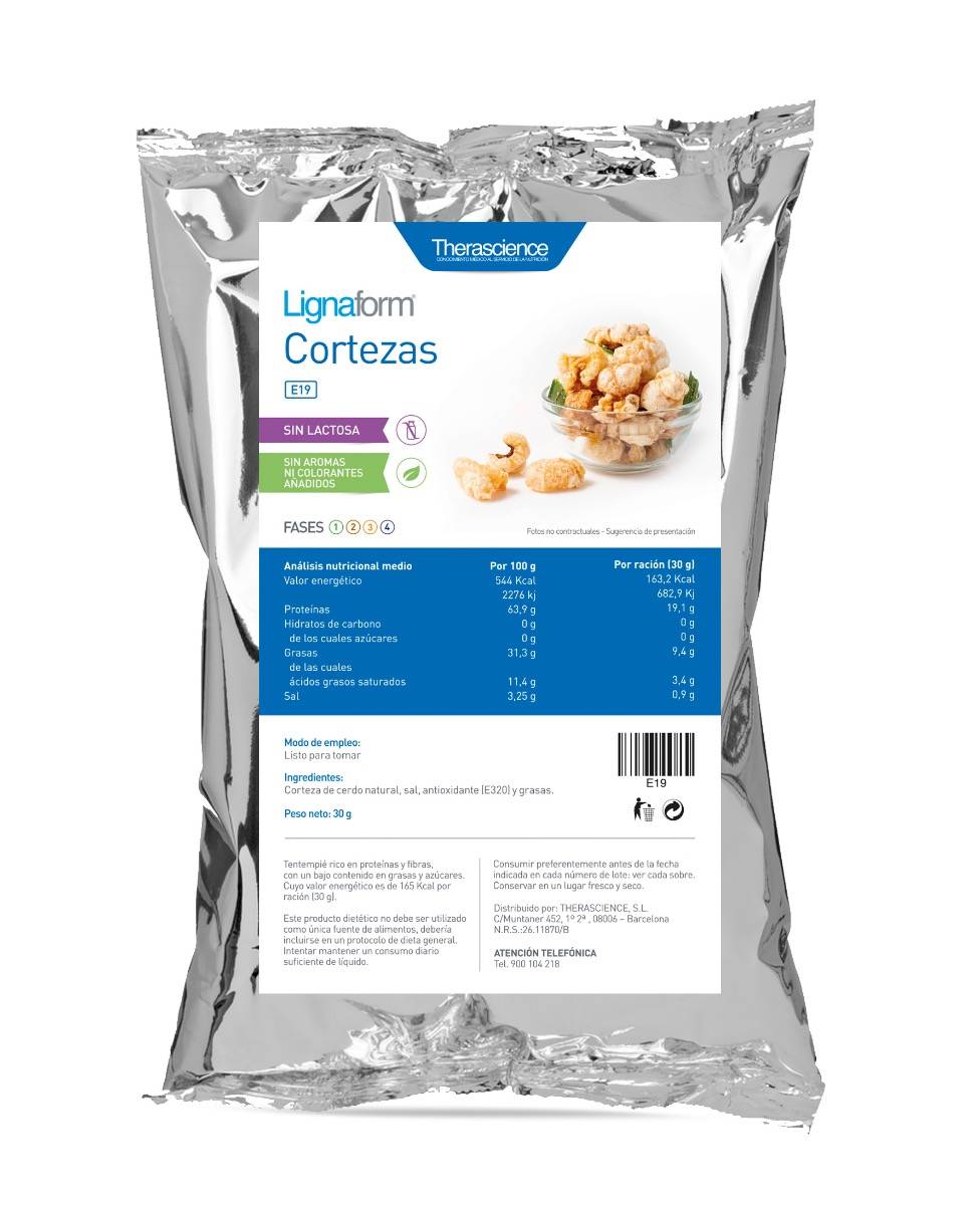 Corteza de cerdo, grasa de cerdo, aroma sabor a corteza (sustancias aromatizantes, maltodextrina, sal, glucosa, azúcar, colorante (extracto de pimentón), aroma humo), antioxidantes (tocoferol, palmitato de ascorbilo).