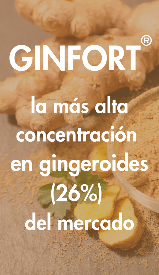 Esto significa que la cantidad de jengibre consumida puede reducirse de 2-4 g a 200 mg de extracto de jengibre Ginfort® titulado en un 26% en gingeroides.