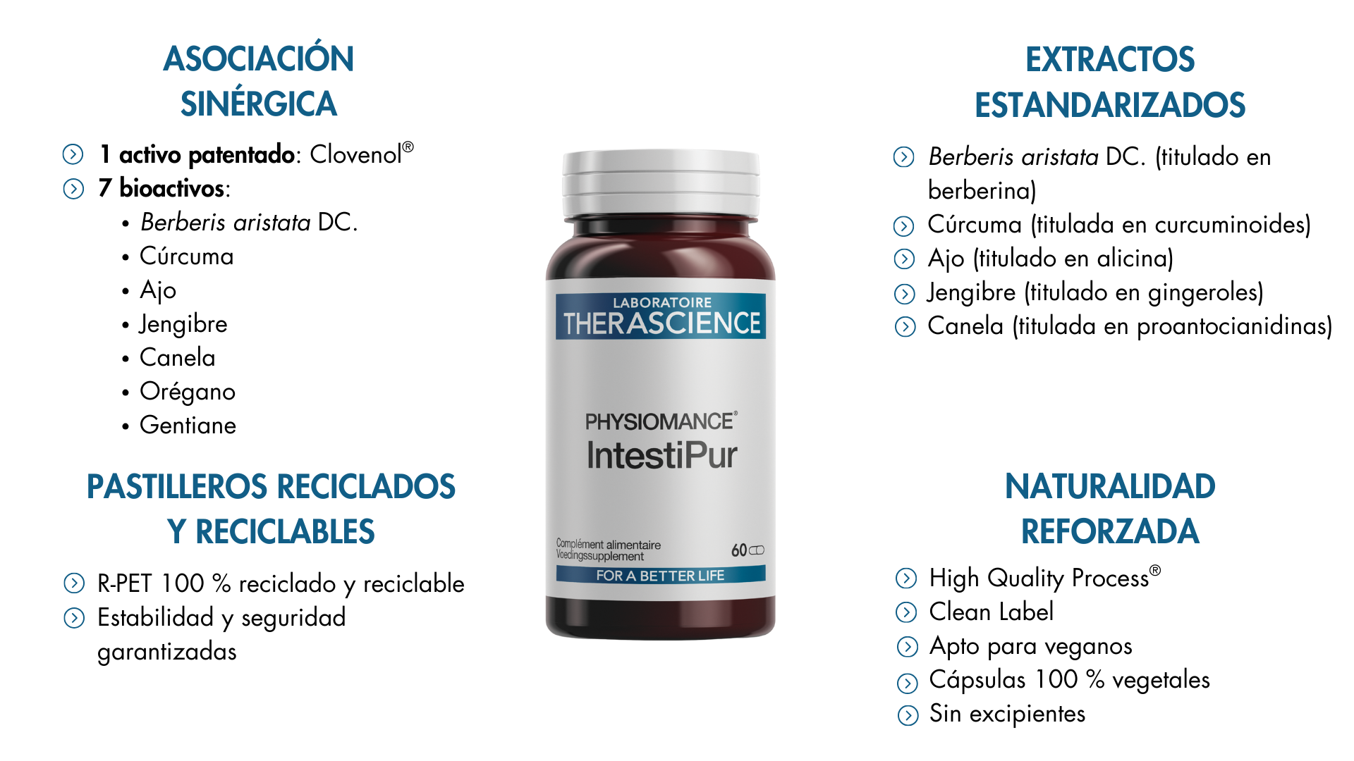 Al combinar estos dos extractos en una fórmula sinérgica, PHYSIOMANCE® IntestiPur se basa en la complementariedad tradicional de estas raíces, al tiempo que garantiza la trazabilidad, la pureza y la concentración controlada de acuerdo con las normas europeas.