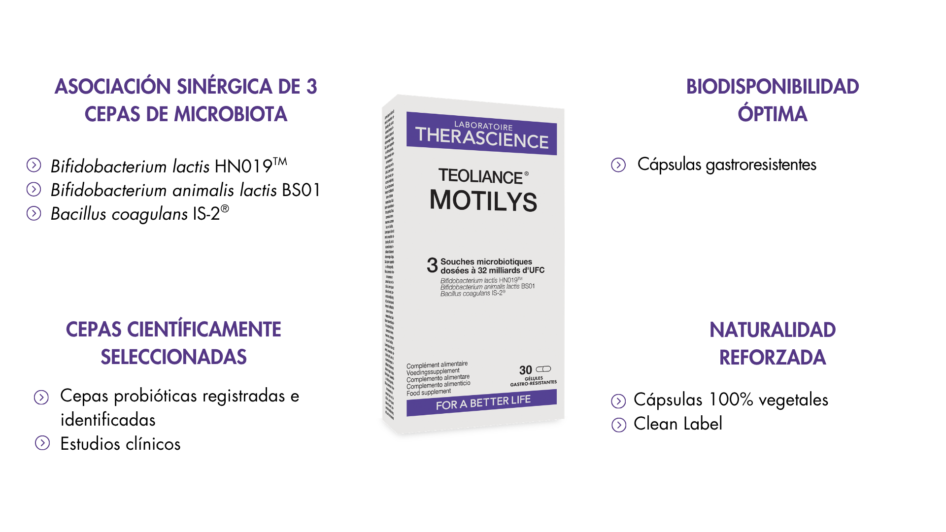 Gracias a su condición de cepa registrada, Bacillus coagulans IS-2® se beneficia de una trazabilidad completa, un estricto control de calidad y una constancia de un lote a otro. Su integración en TEOLIANCE® Motilys forma parte de un riguroso enfoque científico, cuyo objetivo es combinar cepas complementarias, estables y documentadas, con el fin de cumplir con el marco normativo europeo.