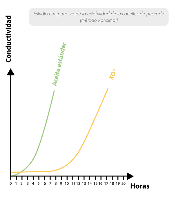 X.O® es un proceso registrado que optimiza la estabilidad de los aceites ricos en ácidos grasos poliinsaturados a la vez que retrasa los efectos de la oxidación.