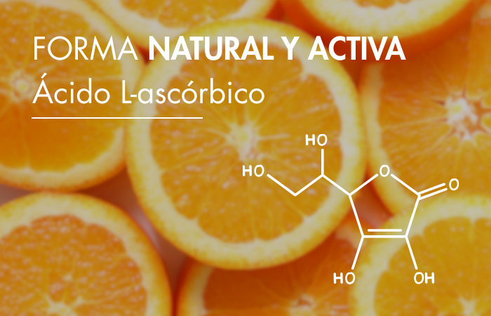 La vitamina C en forma de ácido L-ascórbico es la forma natural y biológicamente activa de la vitamina C, la que se encuentra en los alimentos y que utiliza el organismo. Se trata de una molécula hidrosoluble con alta biodisponibilidad, que se absorbe especialmente bien en el intestino delgado.