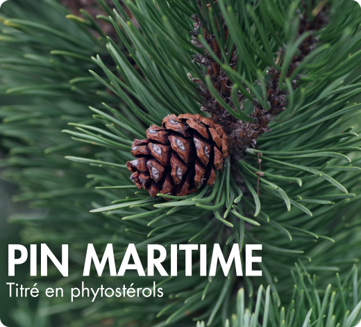 Les phytostérols sont des composés naturellement présents dans les plantes, dont la structure est proche de celle du cholestérol. Cette similitude structurelle leur permet de se fixer aux récepteurs intestinaux du cholestérol et ainsi de réduire son absorption au niveau de la paroi intestinale. Dans PHYSIOMANCE® DIMÉOL Q10, les phytostérols sont extraits spécifiquement de l’huile de pin maritime (Pinus pinaster), un conifère originaire des forêts tempérées d’Europe de l’Ouest, particulièrement présent dans les Landes françaises. L’huile extraite de ses aiguilles et graines est une source naturelle, durable et respectueuse de l’environnement.