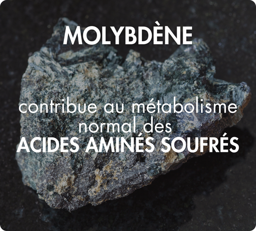 • - Le molybdène contribue au métabolisme normal des acides aminés soufrés ;