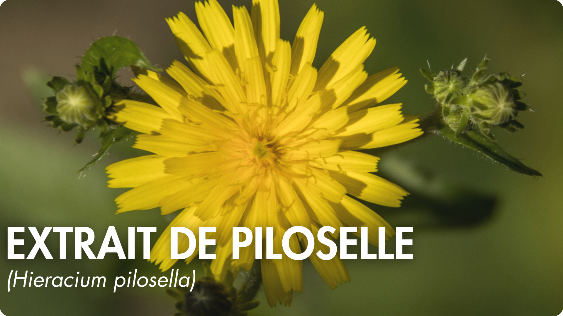 • 300 mg d’extrait de piloselle présente un ratio d’extraction de 4:1, équivalant à 1 200 mg de plante sèche.