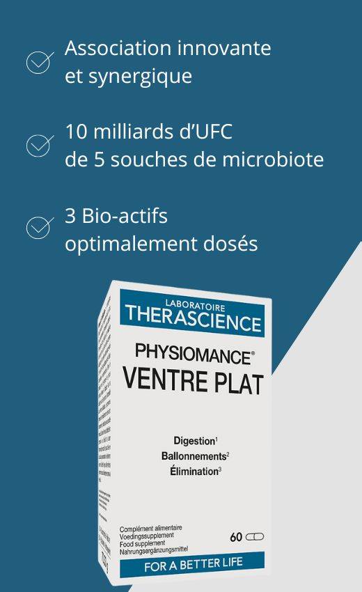 Le Laboratoire THERASCIENCE s’adapte à toutes les habitudes alimentaires : PHYSIOMANCE® Ventre Plat est garanti sans ingrédient à base de gluten et sans lactose. Par ailleurs, nous portons une attention toute particulière à l’origine de nos extraits de plantes, à leur qualité et à l’efficacité de ces extraits. C’est pourquoi nous avons développé le High Quality Process®, un procédé déposé par notre Laboratoire qui garantit l’origine, la qualité ainsi que l’efficacité de tous nos extraits