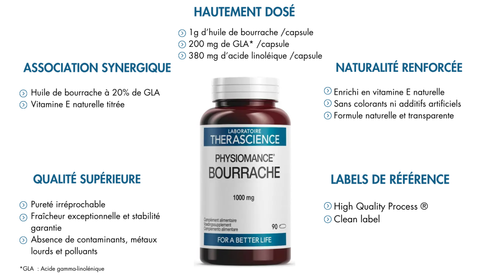 Développée avec une exigence constante de qualité,PHYSIOMANCE® Bourrache reflète l'engagement du Laboratoire THERASCIENCE à proposer des produits purs, sûrs et respectueux, pour une consommation en toute confiance.