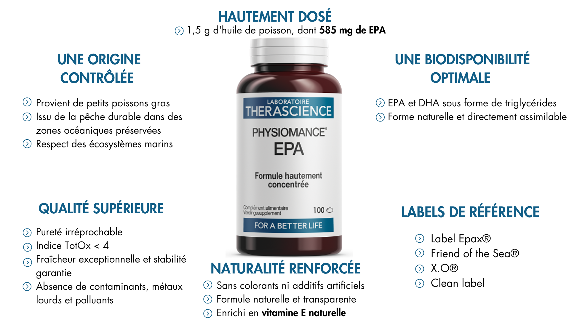 Grâce à sa biodisponibilité améliorée, l’EPA sous forme triglycéride est particulièrement adapté aux populations ayant des besoins accrus en oméga 3, telles que les personnes âgées, les sportifs, et ceux soucieux de préserver leur santé cardiovasculaire. Avec PHYSIOMANCE® EPA, chaque prise garantit un apport efficace et durable, assurant une couverture optimale tout au long de la journée.
