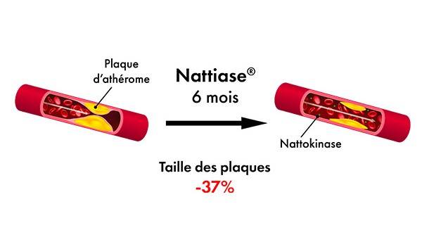 Une seconde étude clinique, versus statines, réalisée sur 76 patients, permet d’observer une diminution significative de 37% de la taille des plaques d’athérome après 6 mois de supplémentation avec 6000 FU* de nattokinase7.