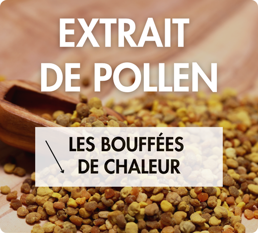 - L’extrait de pollen contribue au confort et au bien-être au cours de la ménopause, aide à diminuer les bouffées de chaleur et à favoriser la vitalité et la résistance de l’organisme.