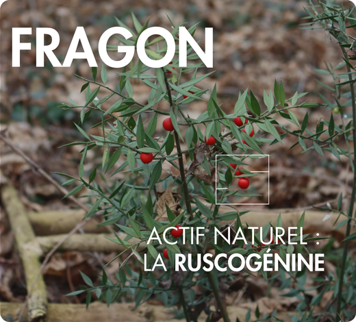 Le fragon (Ruscus aculeatus), également appelé « petit houx », est une plante vivace qui pousse dans les sous-bois méditerranéens et les zones ombragées d’Europe. Facilement reconnaissable à ses petites feuilles rigides et à ses baies rouges éclatantes, il est utilisé depuis l’Antiquité dans les médecines traditionnelles pour ses rhizomes, c’est-à-dire ses racines souterraines, qui concentrent un actif naturel majeur : la ruscogénine. Le fragon était déjà mentionné dans les traités de phytothérapie grecque et romaine, et ses jeunes pousses, proches de l’asperge, ont parfois été consommées en cuisine locale. Son goût légèrement amer en a aussi fait un ingrédient ponctuel en décoctions ou infusions populaires. Aujourd’hui, bien au-delà de ses usages ancestraux, le fragon trouve toute sa place comme allié de choix dans un complexe de complément alimentaire pour la femme ménopausée, où il complète l’action synergique d’autres extraits végétaux.