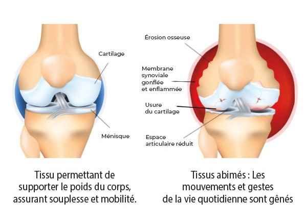 ARTICULATION FRAGILISÉE Tissus abîmés : cette détérioration engendre une gêne dans la réalisation des mouvements et gestes de la vie quotidienne.