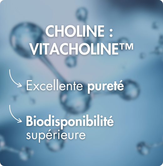 • VitacholineTM : Biotechnologie brevetée garantissant une choline stabilisée, de qualité supérieure et hautement biodisponible
