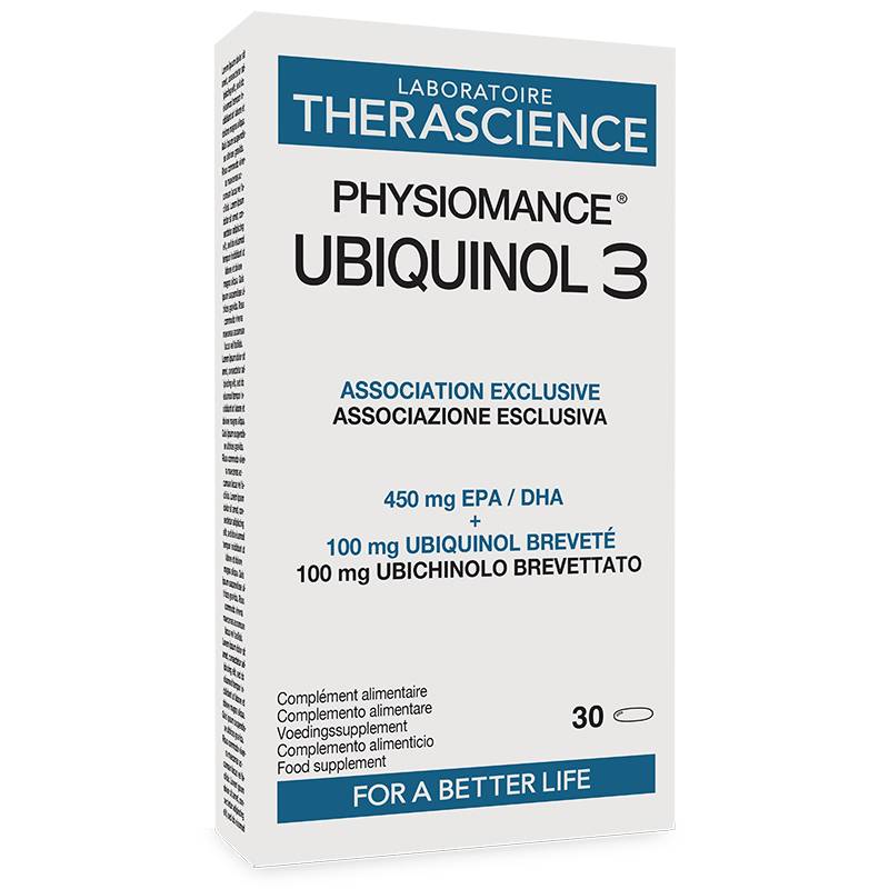 PHYSIOMANCE UBIQUINOL 3 è una combinazione sinergica e innovativa di 100 mg di coenzima Q10 brevettato Kaneka ubiquinol™ brevettato e 450 mg di EPA* e DHA** (omega-3) sotto forma di trigliceridi per: