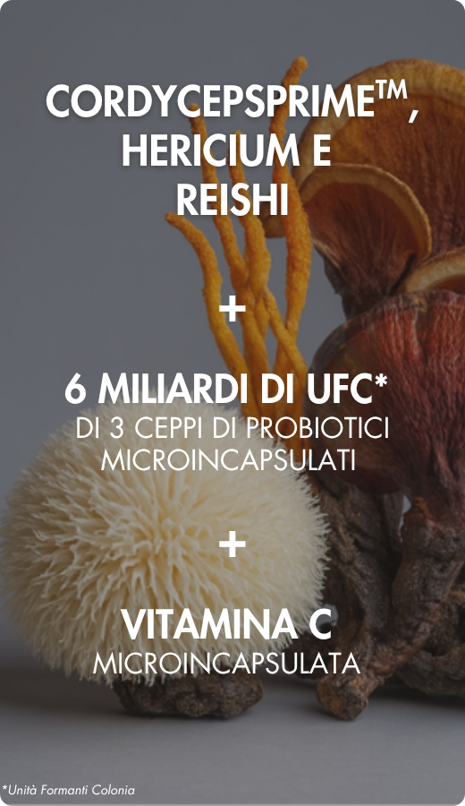 Ottenuto per fermentazione, CordycepsPrimeTM contiene numerosi attivi, come polisaccaridi, acido cordicepico, adenosina, ma anche aminoacidi, ergosterolo, nonché vitamine (A, B1, B2, B12, C, D, E e K) e minerali.