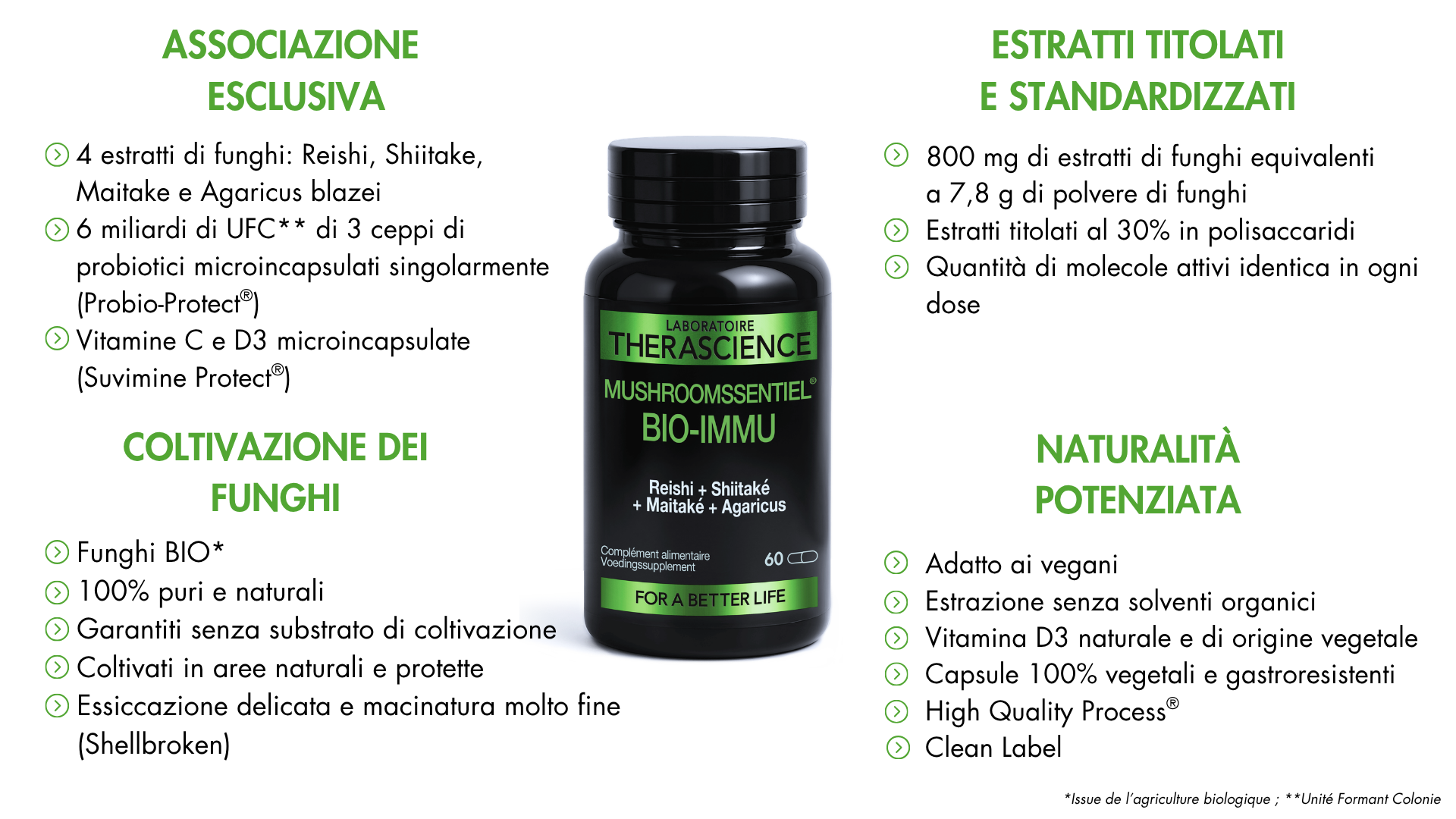 Per preservare le loro molecole di interesse, i nostri funghi sono ottenuti tramite un processo di essiccazione delicato, seguito da una macinazione molto fine secondo il metodo “shellbroken”, che rompe meccanicamente la parete delle cellule dei funghi facilitando il rilascio degli attivi.