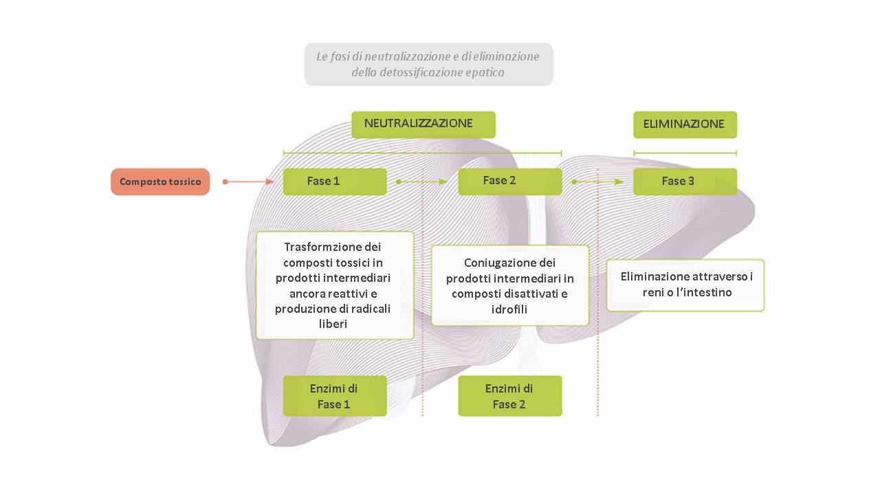 Il metabolismo degli xenobiotici prevede anche altri passaggi, suddivisi in tre fasi. Le fasi 1 e 2 corrispondono alle fasi di neutralizzazione degli xenobiotici, mentre la fase 3 consente l'eliminazione degli xenobiotici attraverso i reni e l'intestino.