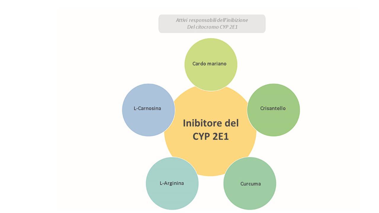 Gli enzimi del citocromo P450 neutralizzano i composti tossici, producendo intermedi di reazione pro-ossidanti. Alcuni composti sono in grado di limitare la produzione di radicali liberi, responsabili dello stress ossidativo, inibendo l'enzima responsabile della loro produzione: il citocromo CYP 2E1. L'inibizione del CYP 2E1 favorisce quindi l'assorbimento dell'alcol da parte della coppia enzimatica ADH/ALDH di cui sopra. Questi composti comprendono la curcuma, il cardo mariano e il crisantello, ma anche la L-arginina e la L-carnosina.