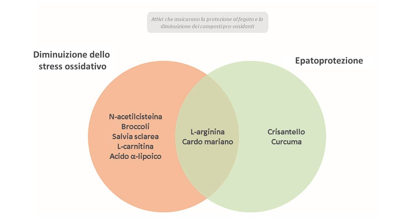 Nel contesto di una detossificazione da alcol, è essenziale combattere lo stress ossidativo ed esercitare un effetto epatoprotettivo grazie a N-acetilcisteina, cardo mariano, broccoli, salvia sclarea, crisantello e curcuma, ma anche con L-carnitina, L-arginina e acido alfa-lipoico.