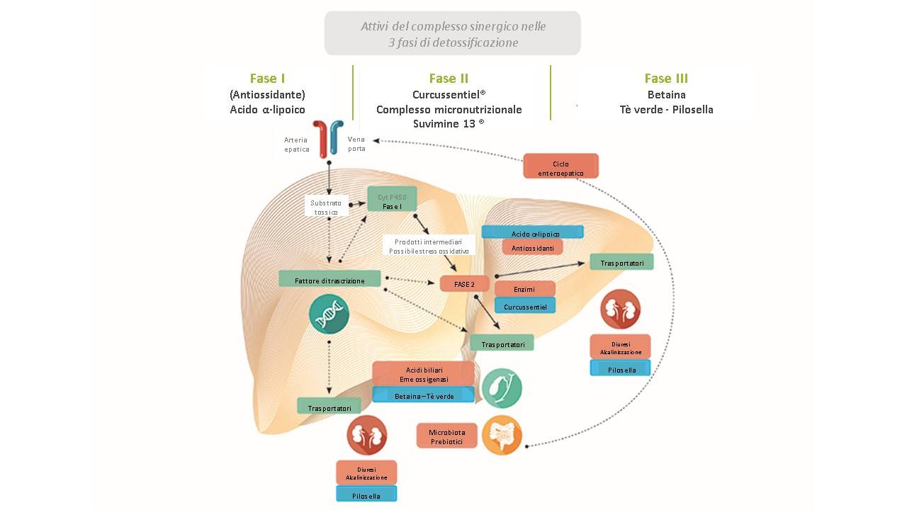 È quindi importante poter indurre l'attività di questi enzimi per facilitare l'eliminazione dei composti tossici, in particolare con la curcuma. Inoltre, l'apporto di N-acetilcisteina, un precursore del glutatione, assicura il corretto funzionamento della GST. L'azione della N-acetilcisteina è complementare a quella dell'acido alfa-lipoico, che rigenera il carattere antiossidante del glutatione, e a quella del selenio, cofattore delle GST e oligoelemento essenziale per il loro funzionamento.