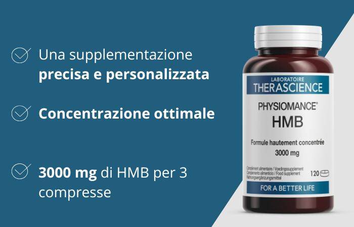 Formula altamente concentrata: 3 g d’HMB (Calcio β-idrossi-β-metilbutirrato), metabolita della leucina, per 4 compresse