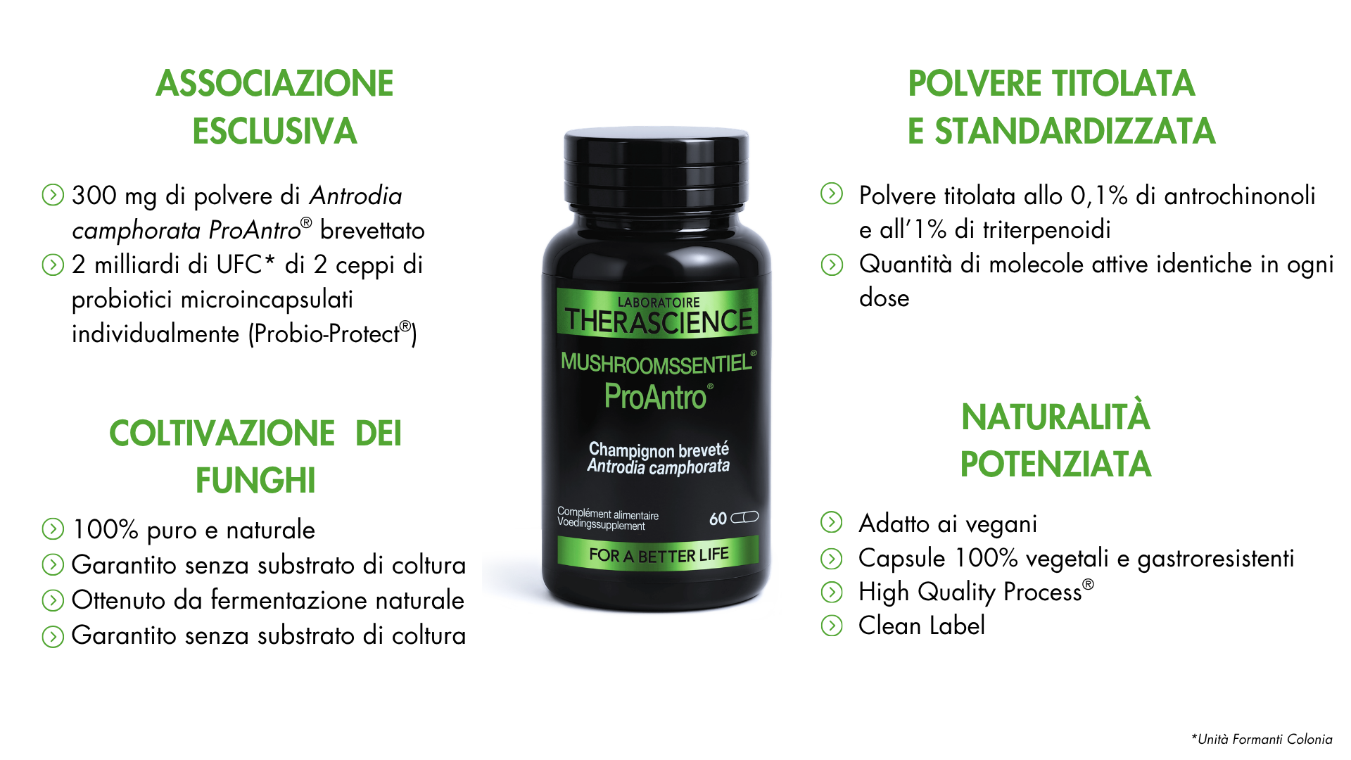 Per coniugare rapidità di crescita e ricchezza di composti attivi, ProAntro® è ottenuto tramite un processo di fermentazione in ambiente solido, garantendo in soli 5-6 mesi una concentrazione di molecole bioattive nettamente superiore rispetto a quella ottenuta con altri metodi di coltivazione.