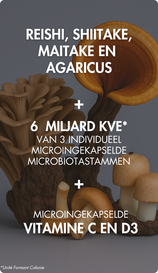 Kiezen voor MUSHROOMSSENTIEL® Bio-Immu betekent kiezen voor een formule die voldoet aan de strengste wetenschappelijke normen en premium paddenstoelen dankzij hoog gedoseerde extracten. Een ideale oplossing om ten volle te profiteren van de voordelen van Reishi, Shiitake, Maitake en Agaricus blazei.