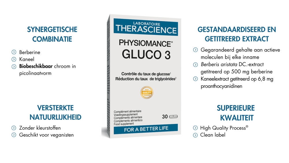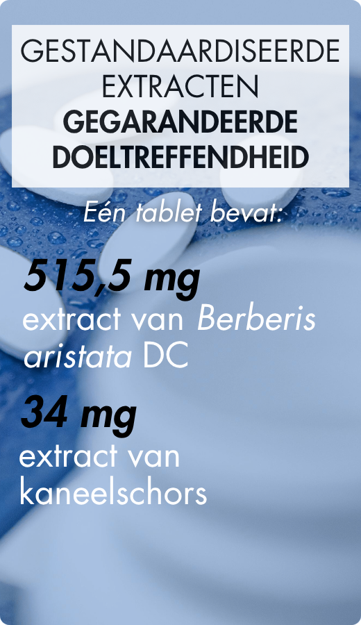 Het extract van wortel van Berberis aristata DC is hoog geconcentreerd met een extractieverhouding van 40:1. Zo bevat één tablet van PHYSIOMANCE® GLUCO 3 515,5 mg extract, gelijk aan 20,6 g droge plant.