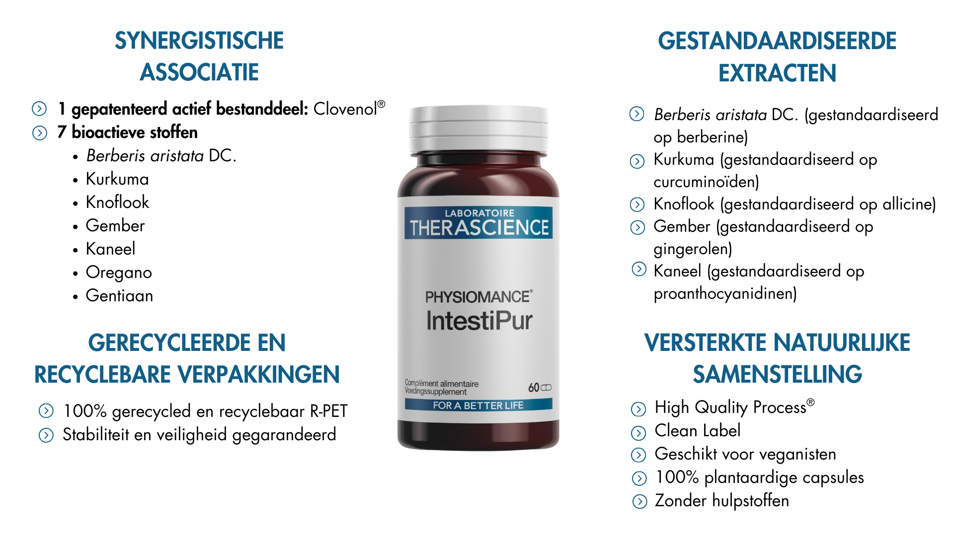 Door deze twee extracten te combineren in een synergetische formule, vertrouwt PHYSIOMANCE® IntestiPur op de traditionele complementariteit van deze wortels, terwijl traceerbaarheid, zuiverheid en gecontroleerde concentratie worden gegarandeerd in overeenstemming met de Europese normen.