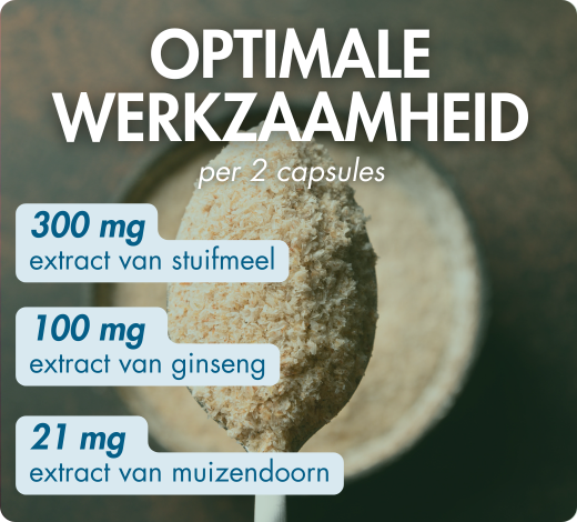 - Ginsengextract, gestandaardiseerd op ginsenosiden, levert energie.