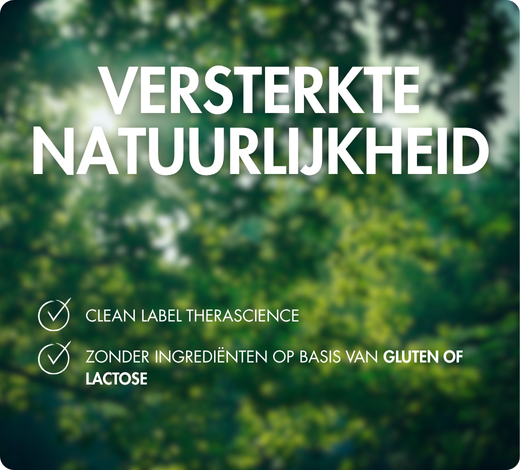 Kwaliteitsverbintenis die natuurlijke formules garandeert, van werkzame stoffen tot hulpstoffen, zonder kunstmatige kleur- of smaakstoffen, zonder aspartaam, titaniumdioxide-vrij, zonder GMO, nanodeeltjes-vrij, niet bestraald, colloïdaal siliciumdioxide-vrij, zonder conserveermiddelen, niet getest op dieren en geproduceerd in Europa.