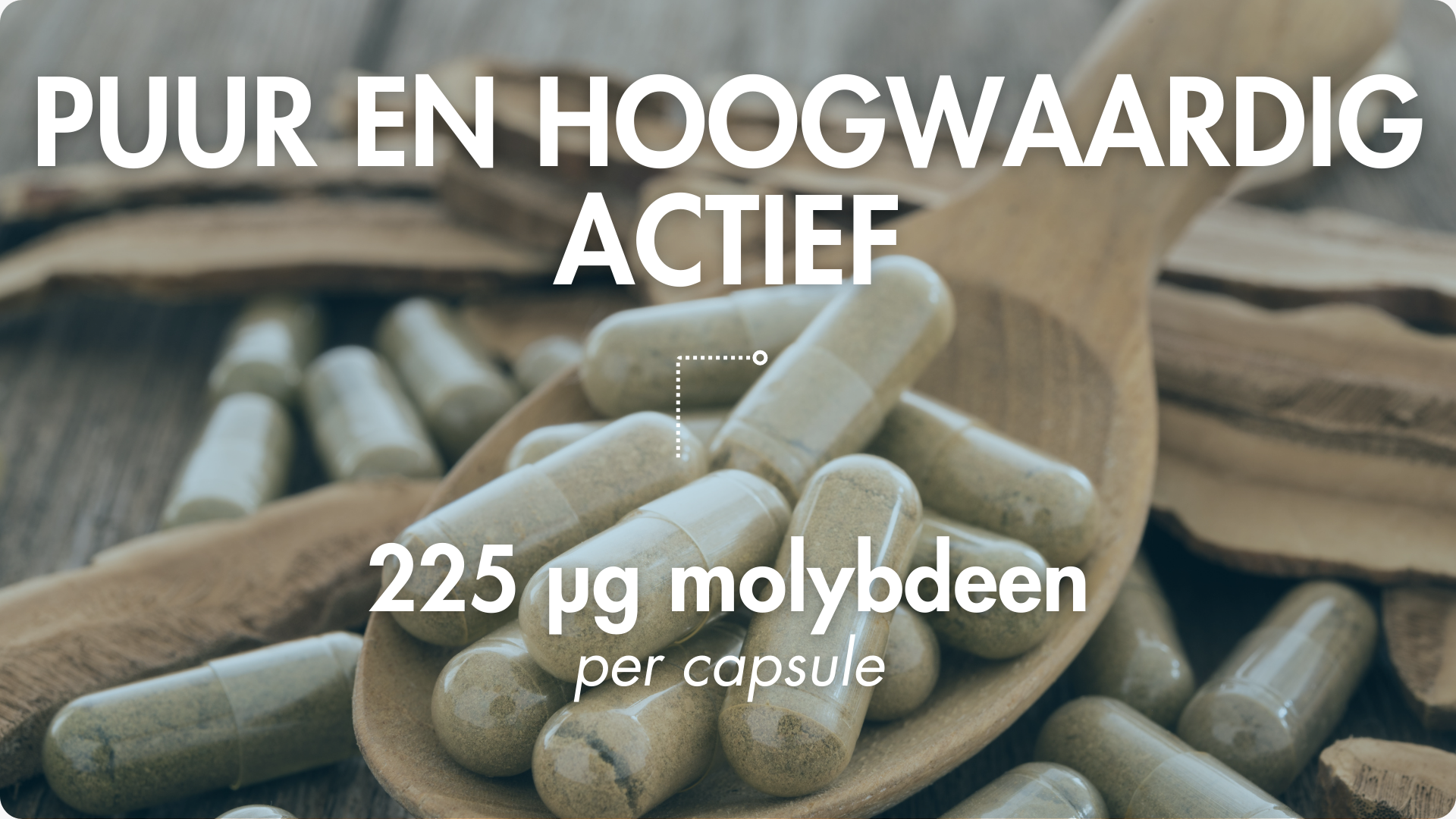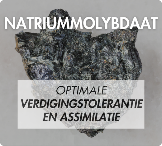 Natriummolybdaat is de meest gebruikte vorm van molybdeen in voedingssupplementen, omdat het goed door het lichaam wordt opgenomen. De samenstelling zorgt voor een goede oplosbaarheid en een efficiënte opname in de dunne darm, wat de werking ondersteunt daar waar het lichaam het nodig heeft.