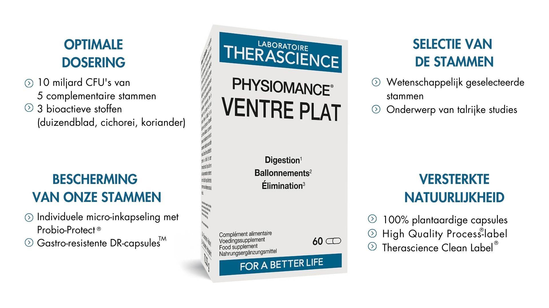 - Synergetische combinatie van 10 miljard CFU's** van 5 stammen van microbiota en 3 plantenextracten (duizendblad, cichorei en koriander;