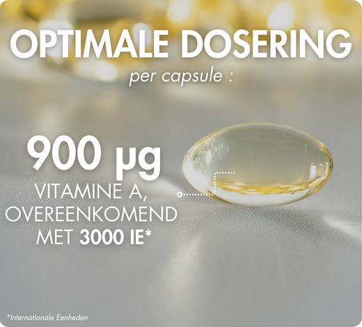 Optimale dosering: 900 µg vitamine A, ofwel 3000 IE* per capsule