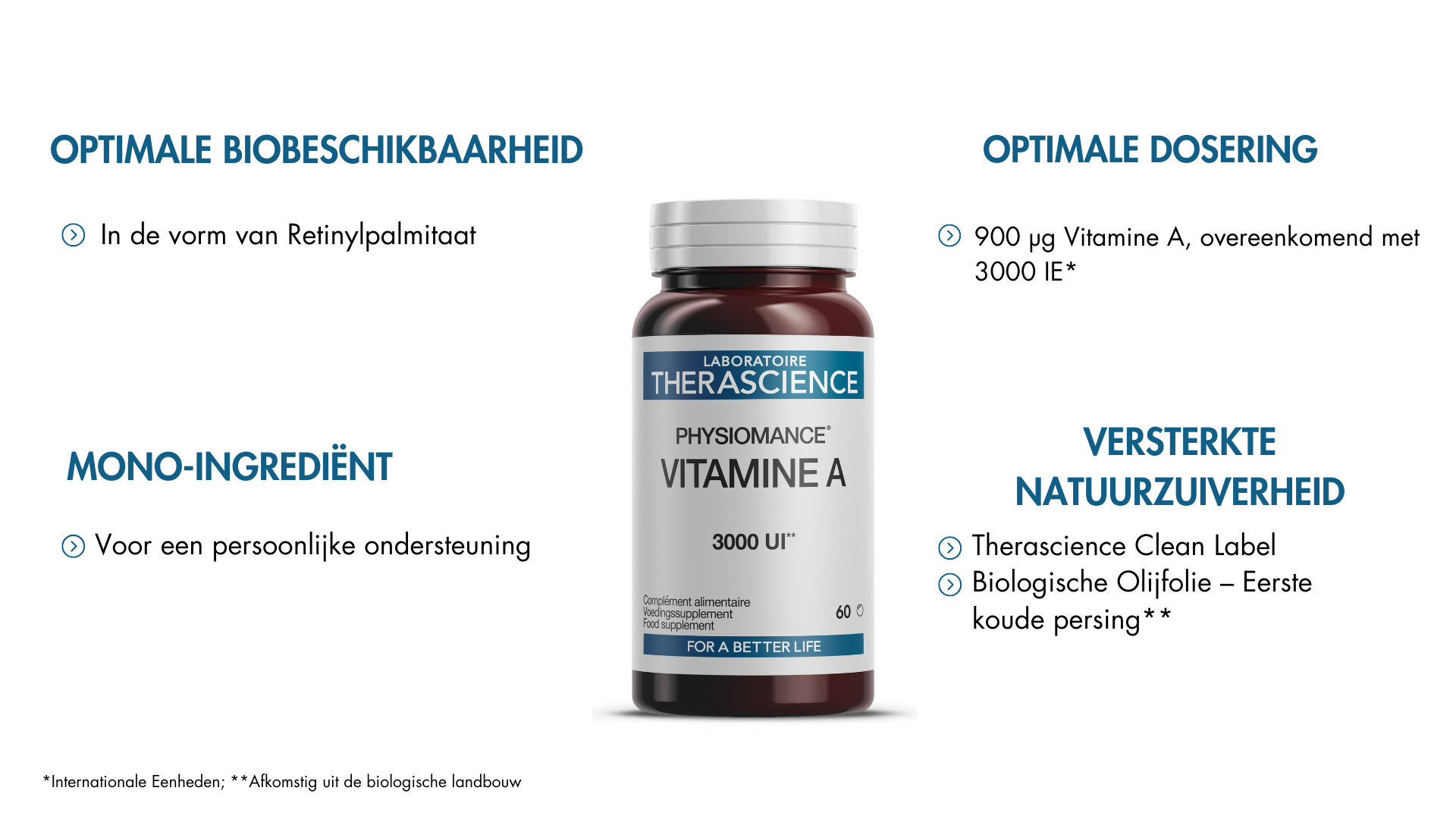 * Internationale Eenheden; ** Afkomstig uit de biologische landbouw