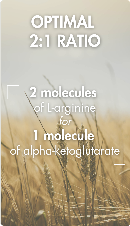 Forma pura e natural de L-arginina alfa-cetoglutarato (AAKG), na proporção ideal de 2:1
