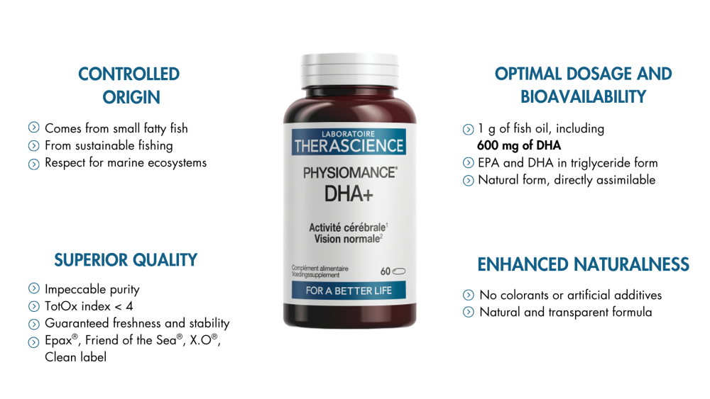 PHYSIOMANCE® DHA+ destaca-se pelo seu compromisso com uma formulação natural que respeita a saúde.