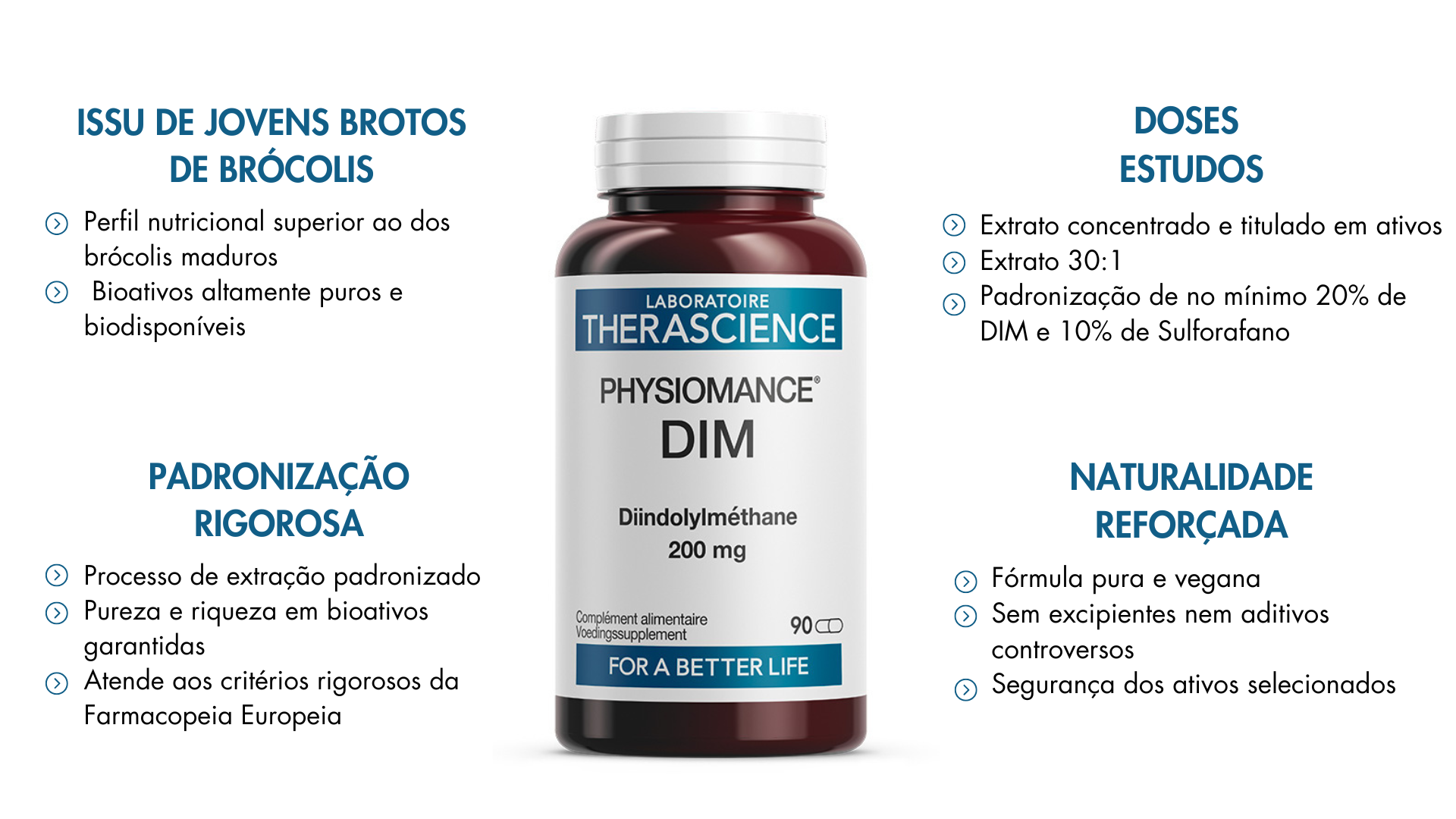 Os brotos de brócolis, quando selecionados com cuidado e tratados com métodos de extração respeitosos, permitem obter um extrato puro, sem excipientes ou contaminantes. Essa pureza garante uma alta biodisponibilidade, ou seja, uma absorção ótima pelo organismo, para que o DIM possa exercer plenamente seus efeitos biológicos benéficos.